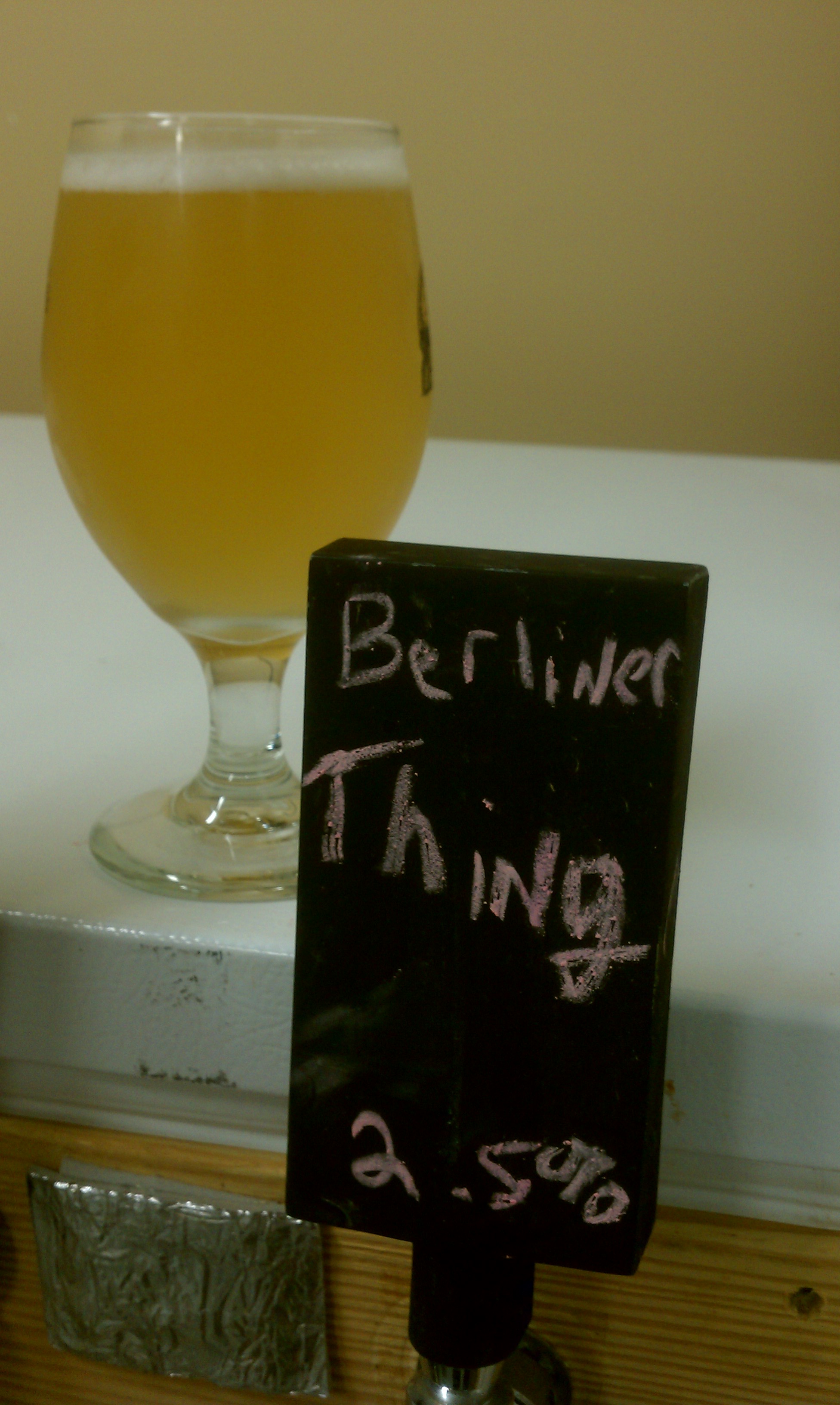 I don’t have any of that batch chilled for a pic but (and I promise the pics will get better when I finish my light box) so I am celebrating with another Berliner type beer. This one was an experiment for sure that I think was a success. My last brew was a used up some grain type Saison. Other than the base malts of Pilsner, Wheat, Munich I had some grain I wanted to use up. I dont have the exacts in front of me ( if anyone wants me to get them I’ll gladly post) but in the 20 gallon batch it also had about a pound each Rye, Golden Naked Oats, and Special B.