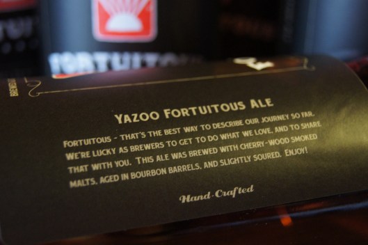 So I was thrilled to learn one of my favorite breweries that just so happens to be local too had a sour beer in the works. A few days ago I sat down with Linus in the taproom to talk about their most ambitious beer project yet: Yazoo “Fortuitous”. Which is based on their award winning Cherrywood Smoked Porter called “Sue”.
