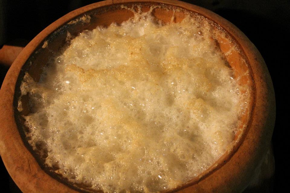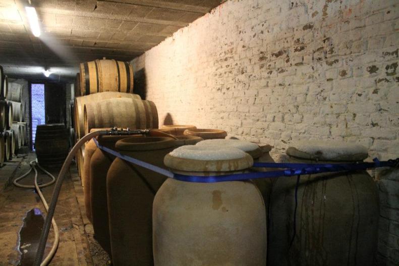 Some time ago, 12 amphoras of 200 litres each arrived at the brewery.After soaking them in water to make them less porous, they were filled with the Lambic produced during the 19th brewing session of season O (which took place on 26 January 2012).