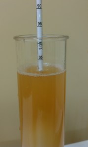 As of this post the oranges have been in the carboys for almost 5 days. Today I decided to pull samples for gravity readings and tasting. 10 days into this batch and I’m really liking what’s going on. The Brett C+WLP20 version is showing some great playfulness between the yeasts and the oranges. Really complimenting each other very early on. The funky version is showing lactic acid flavors and great orange/grapefruit/raspberry flavors. I do think the beers will darken up and get redder as the oranges break down more and drop out. Right now they are all floating at the top of the carboy.