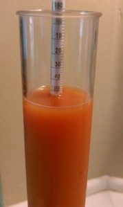 Using a large mouth funnel the juices and pulp poured right into the carboys with only a few pieces needing that extra smash with a spoon. As I was pouring in the oranges I also had a 2 psi stream of co2 going to lessen the chance of oxygen pick up.