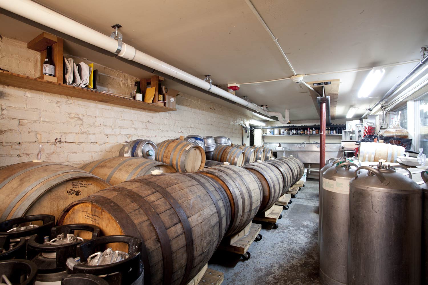 Brad- I’ve got about 8 different cultures. All the Brett’s, Lambic blend, Belgian sour, Roeselare, Pedio and Lacto…I’ve got all those going in carboys. When I’m ready to inoculate a barrel I just try to think about where I want it to go: flavor production, aromatics, and the character of the beer. Then I’ll take a little pipette and taste each of the carboys. I usually go with the Brett’s first, I like to do a 2-5 month Brett starter on the barrel (sometimes I go with a blend), but just taste them and see which character I’m really digging. Then I take a homebrew racking cane into the carboy, run it around the bottom to get those big yeast plugs transferred into the barrel. I’ll top that carboy off with some fresh wort from our raspberry wheat, let it go and revisit it when I need to.