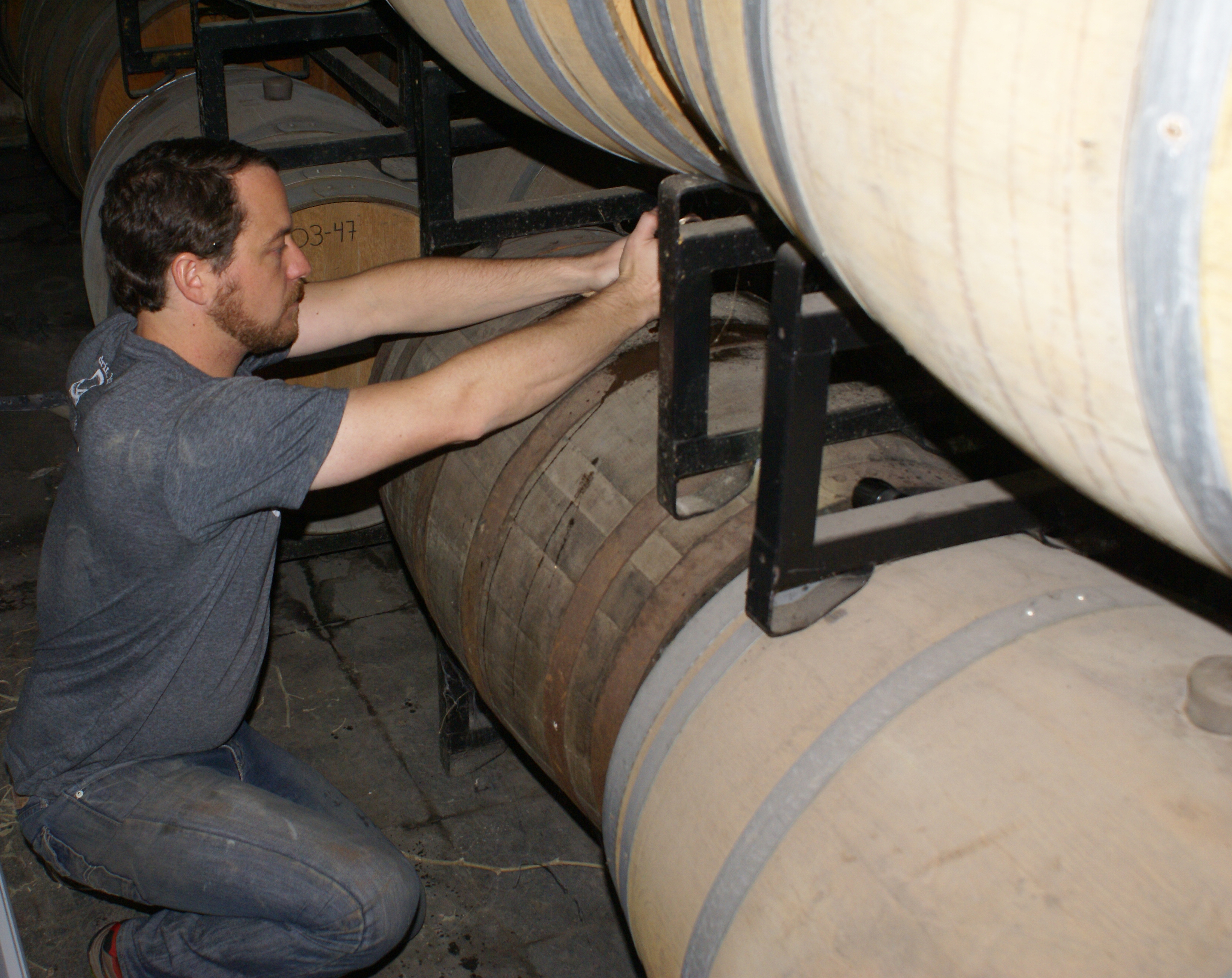 Caleb- We have a racking “Bulldog” that’s similar to a racking cane you use in home brewing. It’s stainless steel with a sight glass on the top. You can actually add pressure to the barrel, almost like a keg; in that you put the stem in and then start racking the bright beer off. Once it’s set you push co2 into the barrel and it draws the beer off. I don’t know if you’ve heard the story about us blowing a barrel up, but it was because we didn’t know enough about the system. One of our first Kiwi batches we just blew the head off a barrel and yes we learned a lot from that [haha]! Oak barrels are their own animal…kegs are heavy, but oak barrels are ungainly to move…I don’t pity the wineries or distilleries at all. They’re and old fashion container and there’s a reason brewers use stainless kegs.